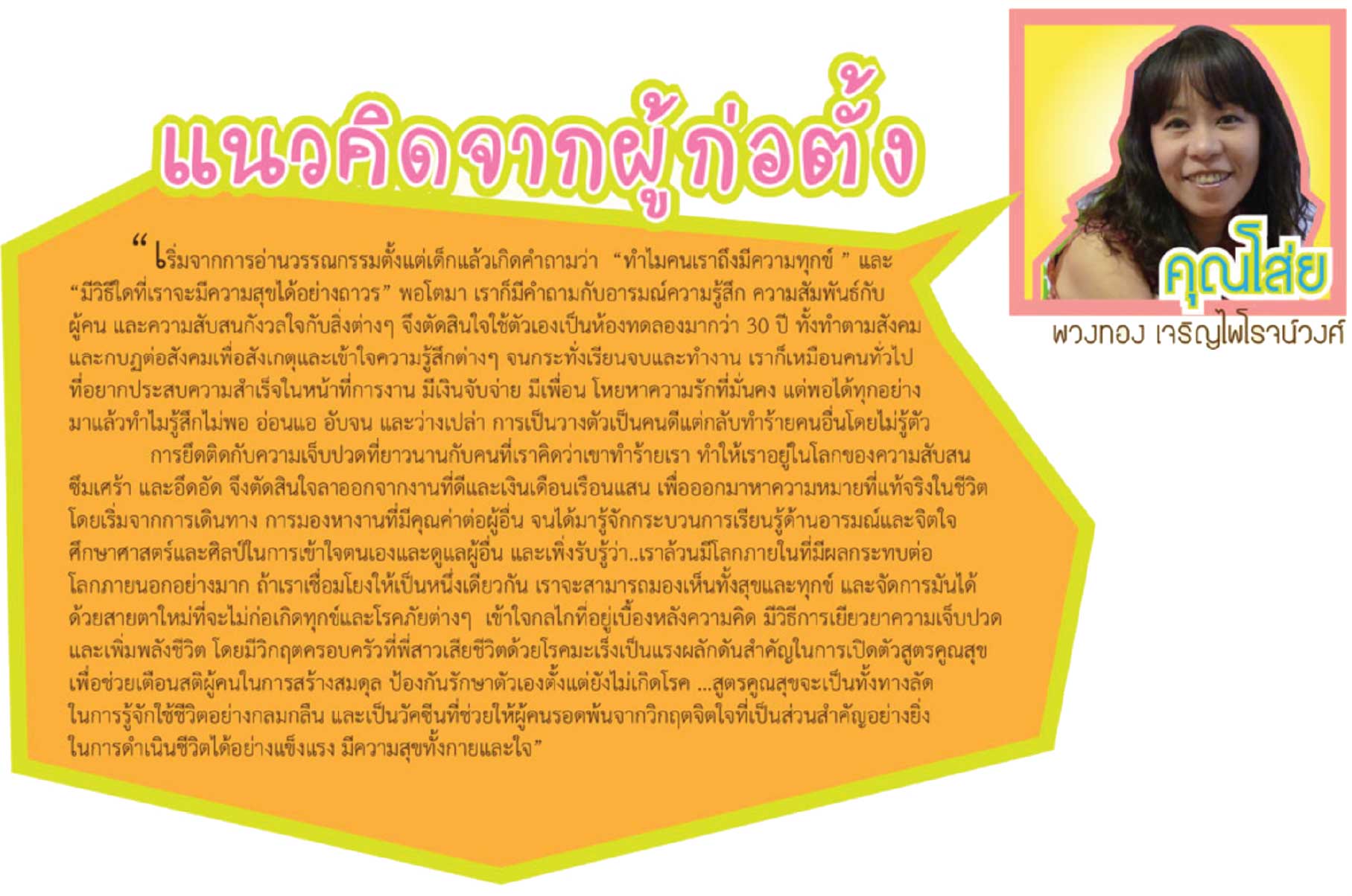 สูตรคูณสุข ก่อตั้งในรูปแบบบริษัทจัดฝึกอบรมกระบวนทัศน์ใหม่ คือ นวัตกรรมใหม่ในการออกแบบและจัดกระบวนการเรียนรู้เพื่อพัฒนาบุคคลากรในองค์กร โดยความเชื่อที่ว่า “คน คือ ทรัพยากรที่มีค่าที่สุดในองค์กร” ดังนั้นการพัฒนาที่ยั่งยืนควรเริ่มจาก…การส่งเสริมให้บุคลากรได้เรียนรู้ตัวเอง เพื่อเข้าใจวิธีการหาและดึงความ